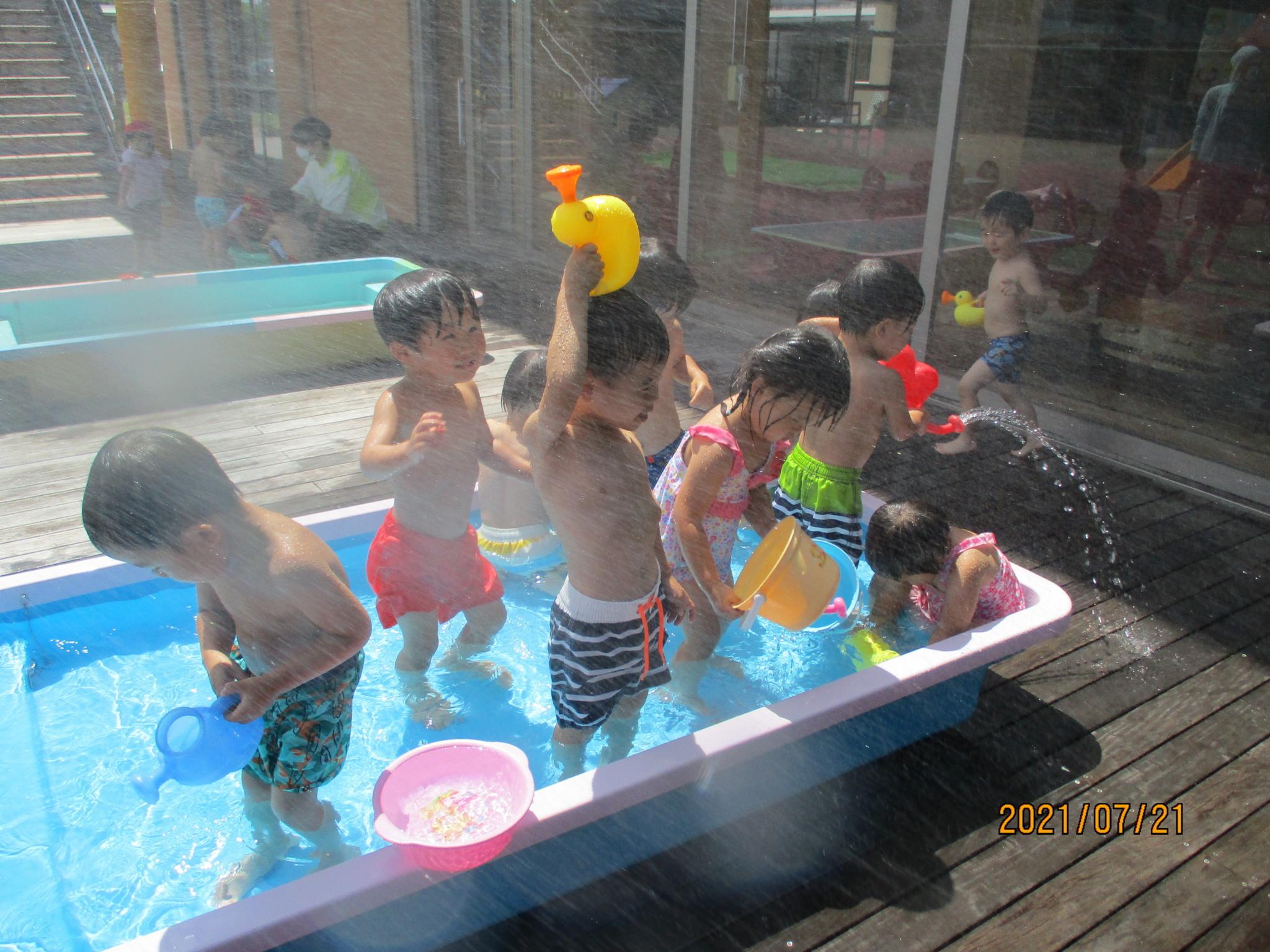じょうろで水をかけたり、ワニさんに変身したりして思いきり楽しんでいます。