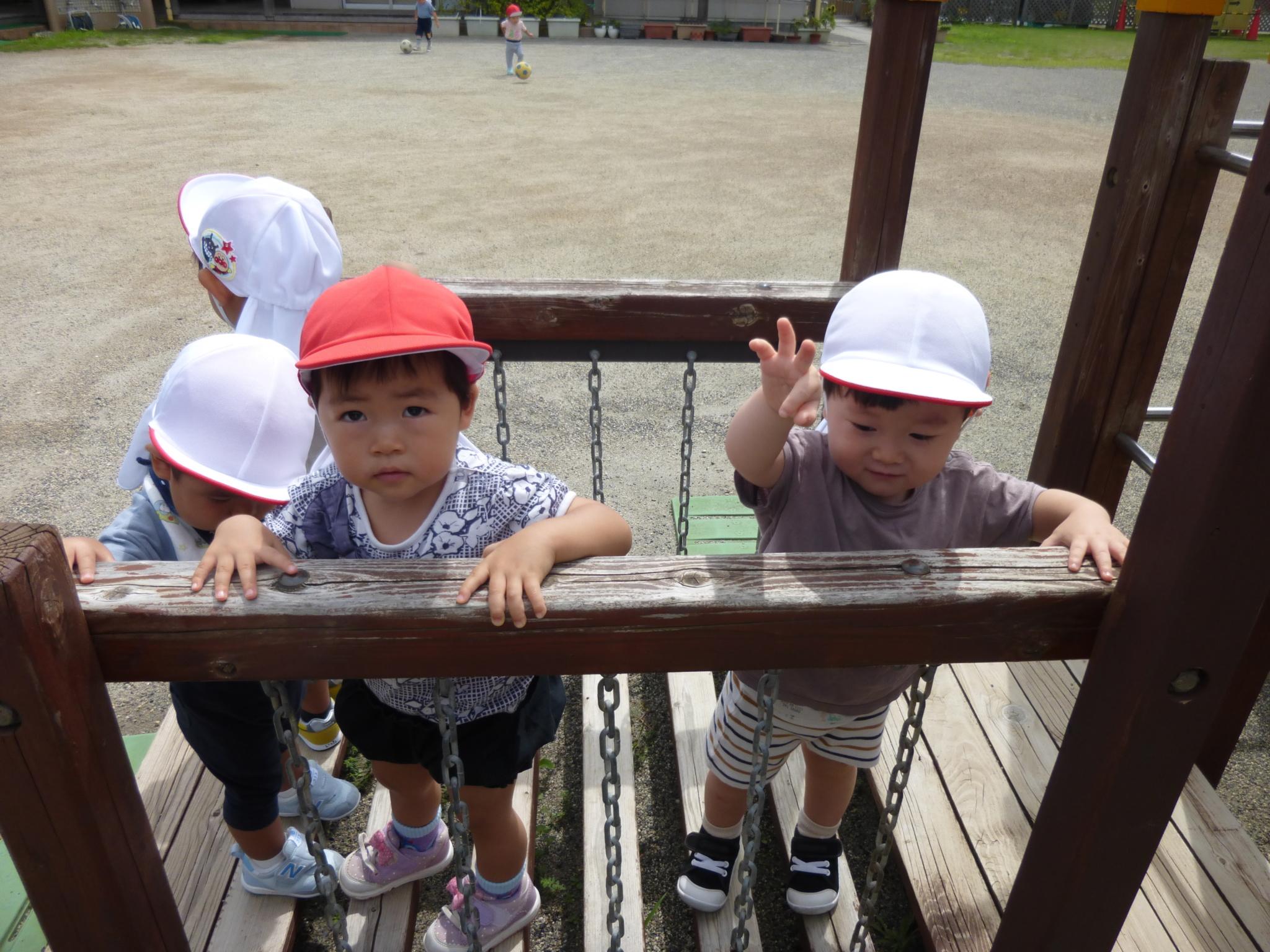 子ども達は、元気いっぱい園庭で遊んだよ‼