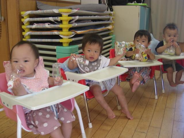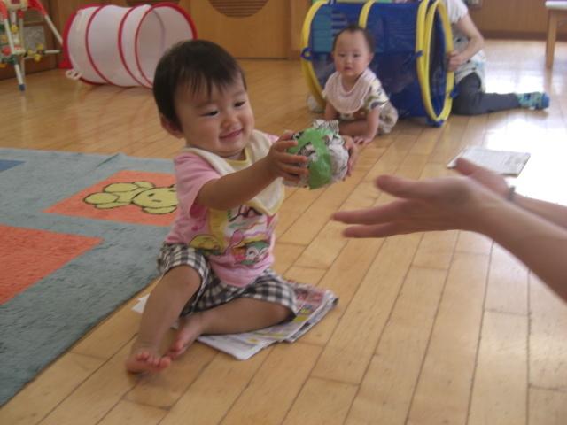 入園して1~2か月のつくしさん。園生活にもすっかり慣れ、笑顔もたくさんみせてくれます。好きなおもちゃをみつけてハイハイでとりに行ったり、音楽に合わせて手作りのマラカスを鳴らしたり、新聞遊びをしたり・・・。これからの季節、乳母車に乗って大好きなお散歩にたくさん出掛けたいと思います。