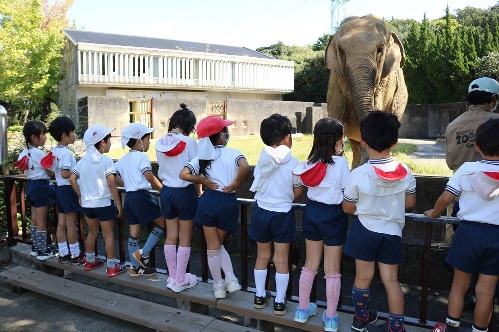 良いお天気のなか園外保育で浜松市動物園へ出掛けてきました。前日からどんな動物を見たいか子どもたちと話し合い、コースを決定!見たかった動物を前に友だちと話をしながら楽しんで見ていました。ゾウと一緒に写真撮影もでき、お母さんたちが作ってくれたお弁当を嬉しそうに食べ大満足の子どもたちでした。