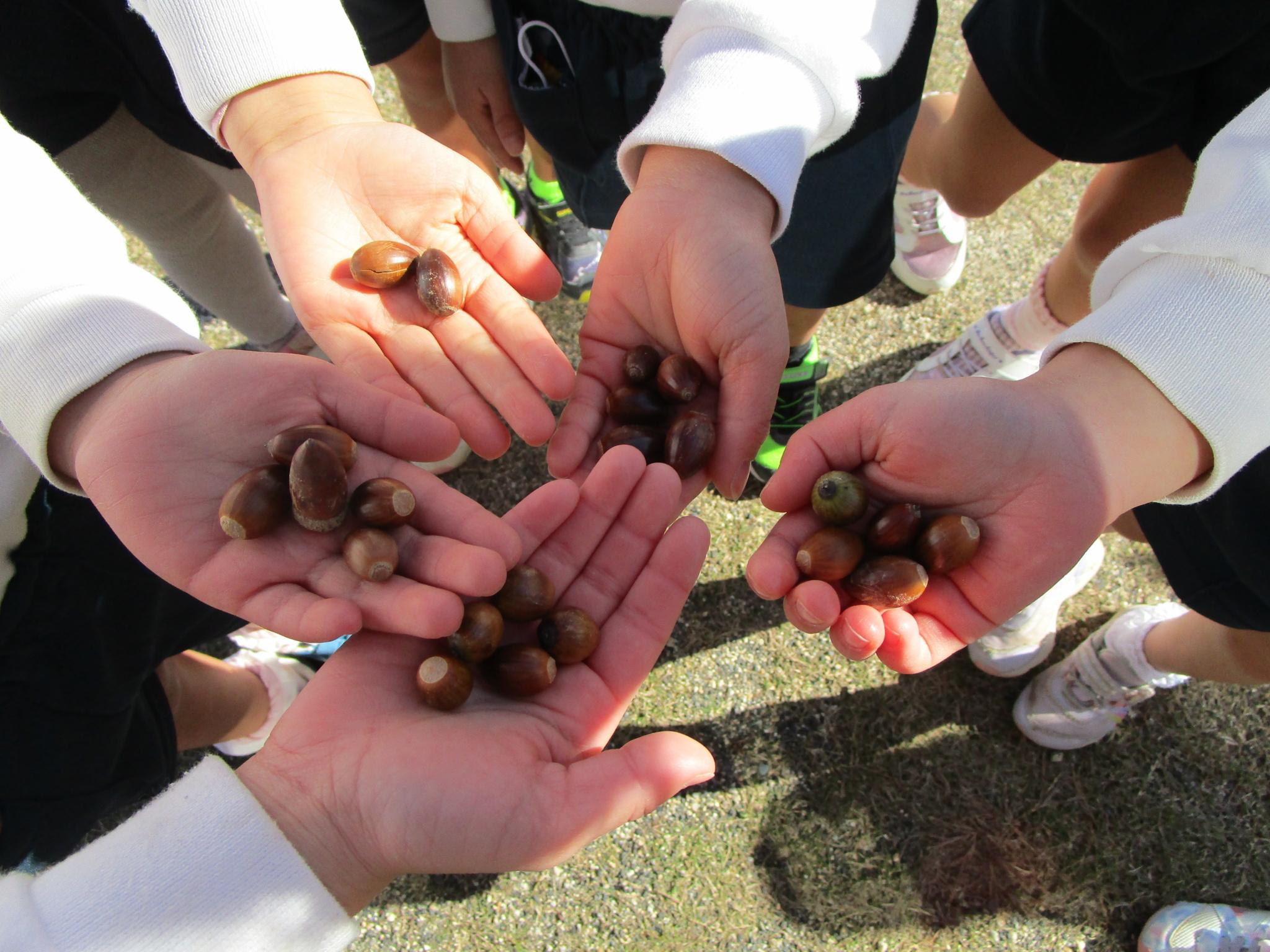幼稚園に遊びに行きました。大きい遊具やどんぐりの木を見つけて大喜びの子どもたち!一人5つの約束を守ってどんぐりを大事に持って帰ってきました。