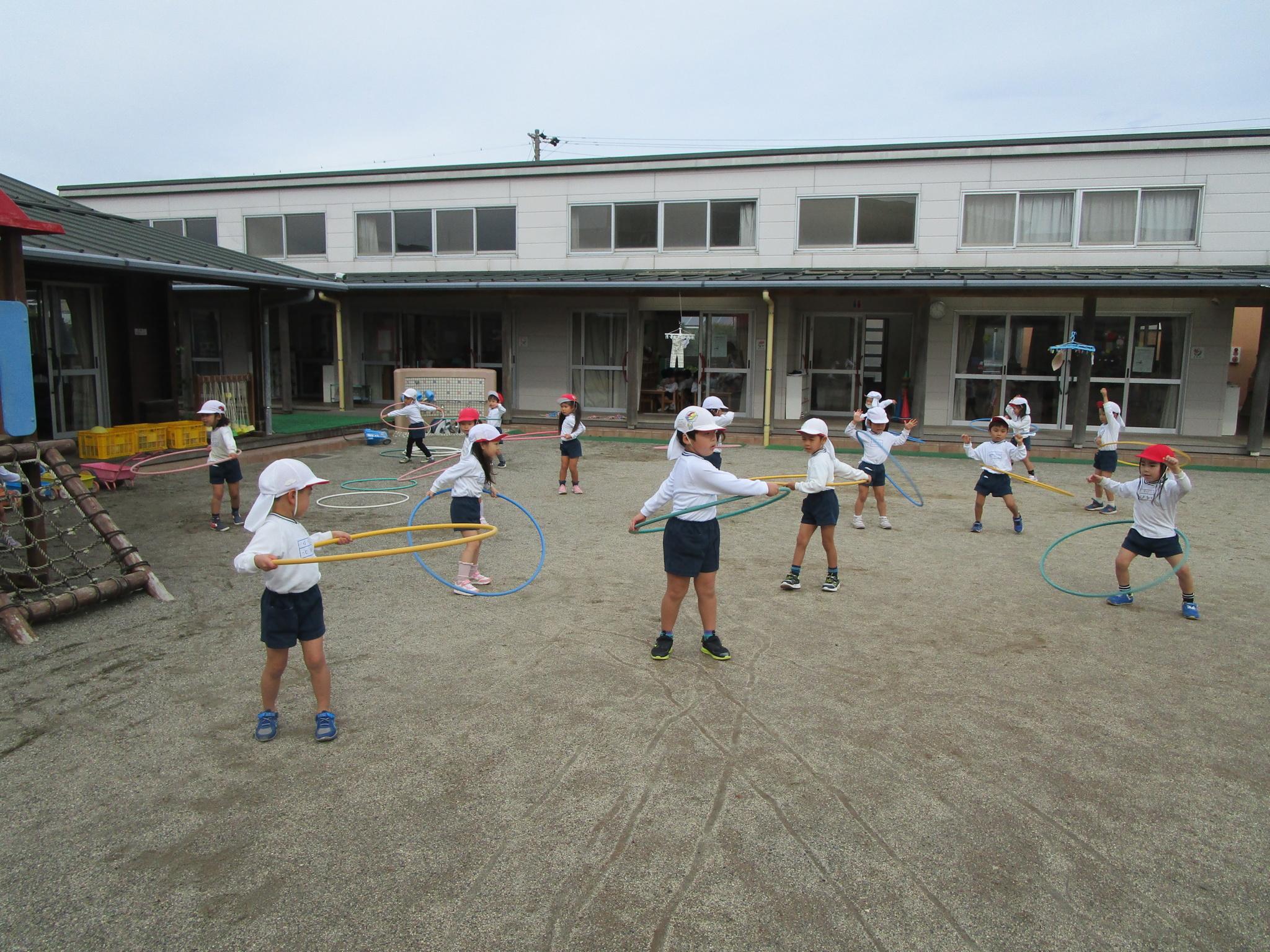 また、フラフープも頑張っています。少しずつ回せる時間が長くなってきたゆり組さんです。