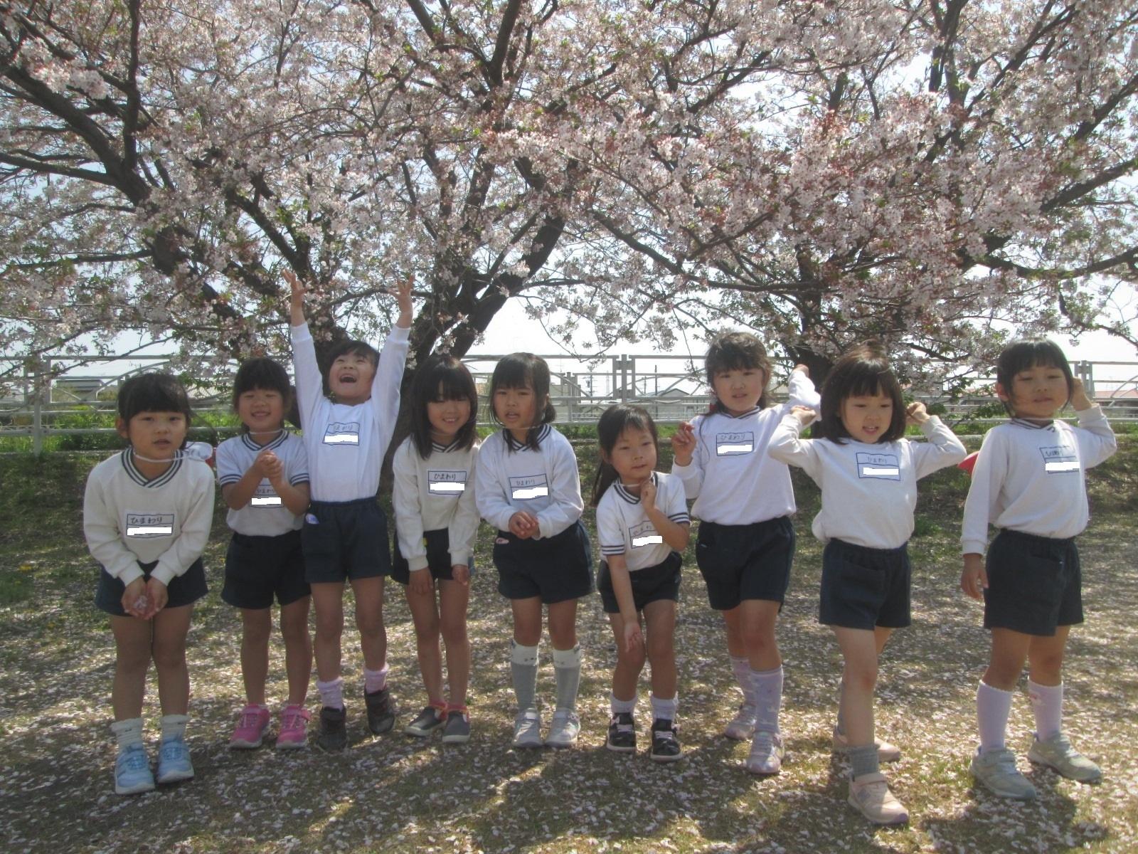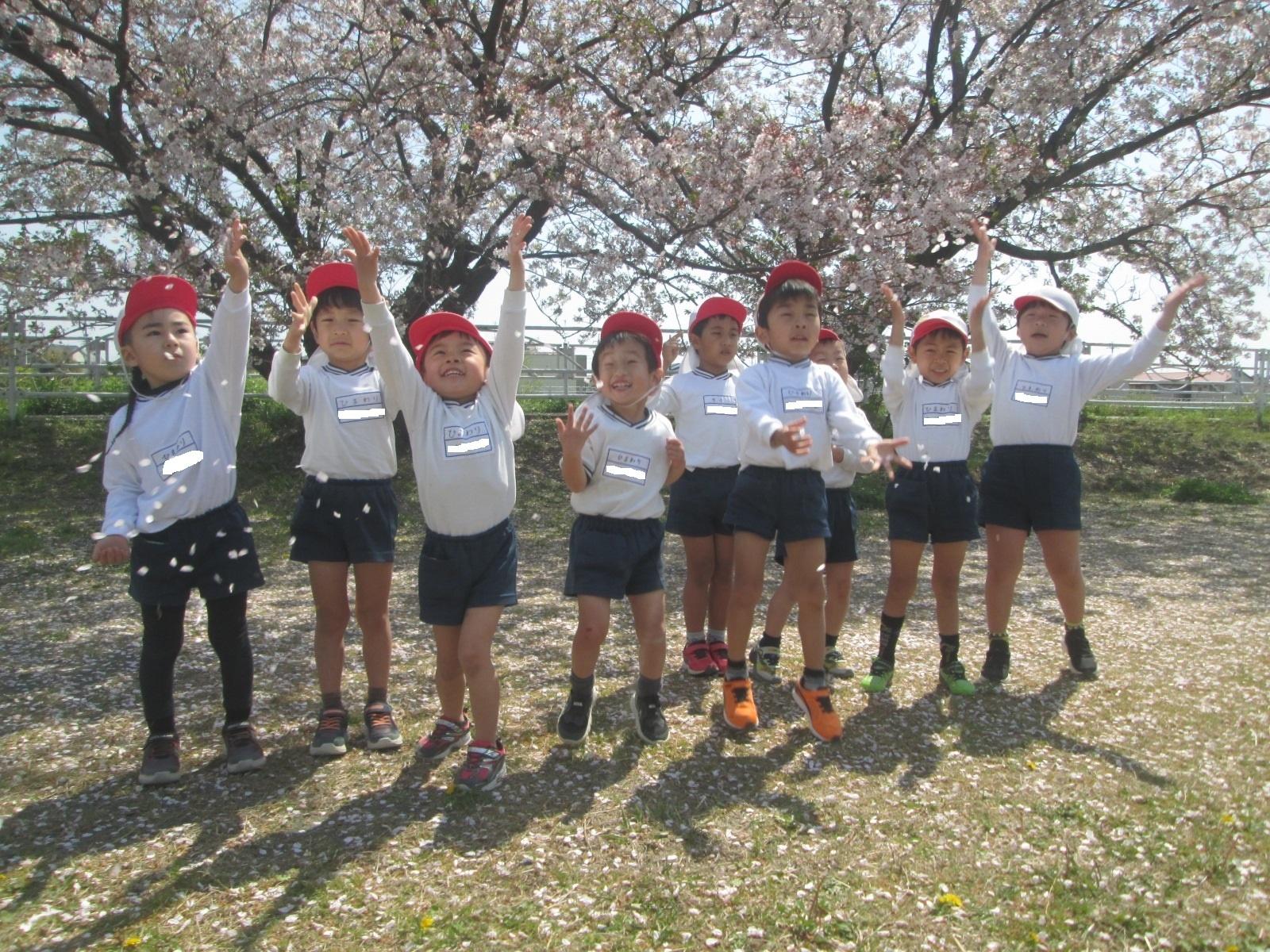 さくらの花も満開!ひまわり組のスタートです。さくらの花びら集めたよ!さくらのシャワーきれいだね!