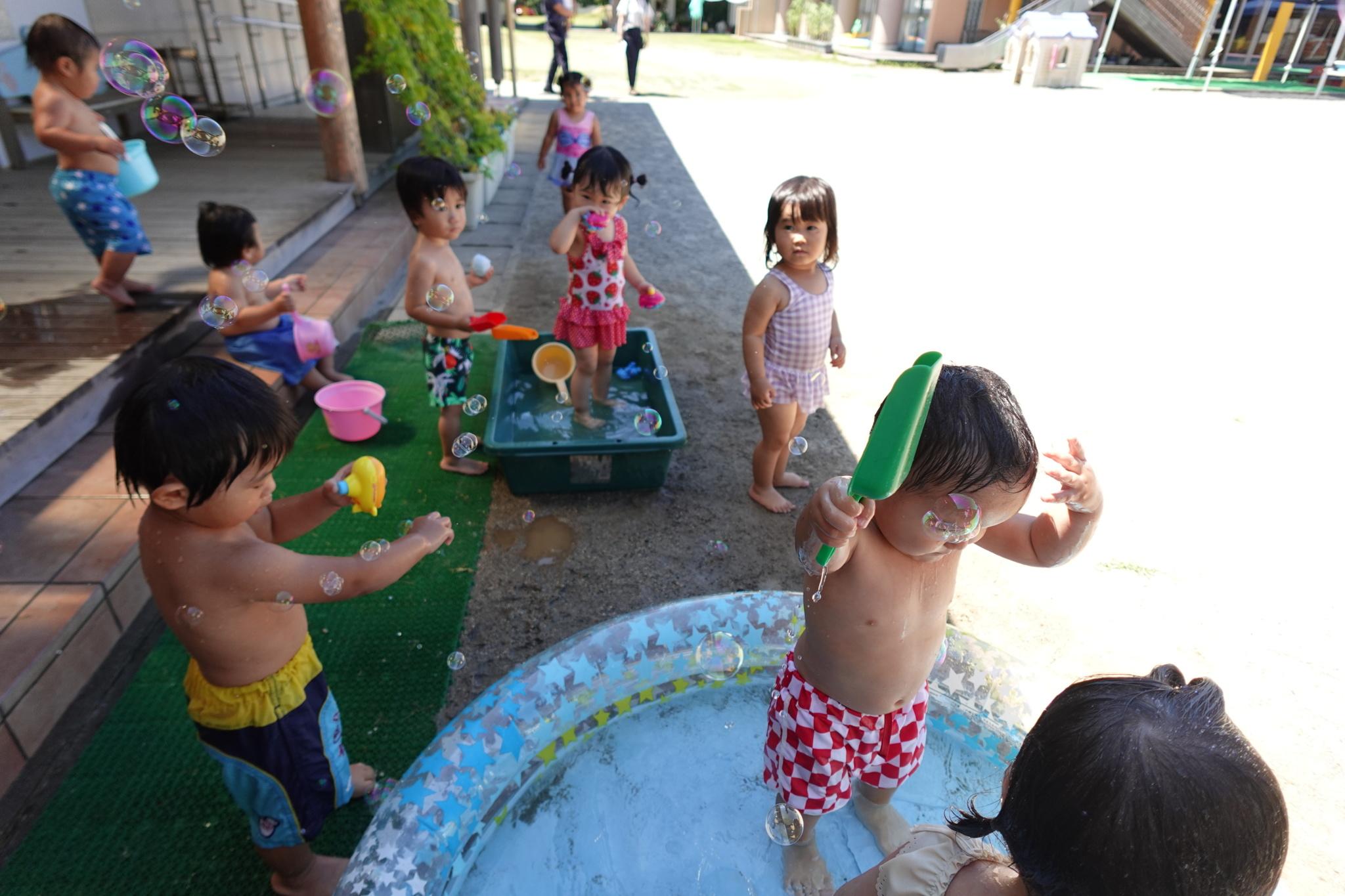 しゃぼん玉も大好きで、触ってみたい!と興味津々で、飛んでいくしゃぼん玉を追いかけるなどして楽しんでいます!