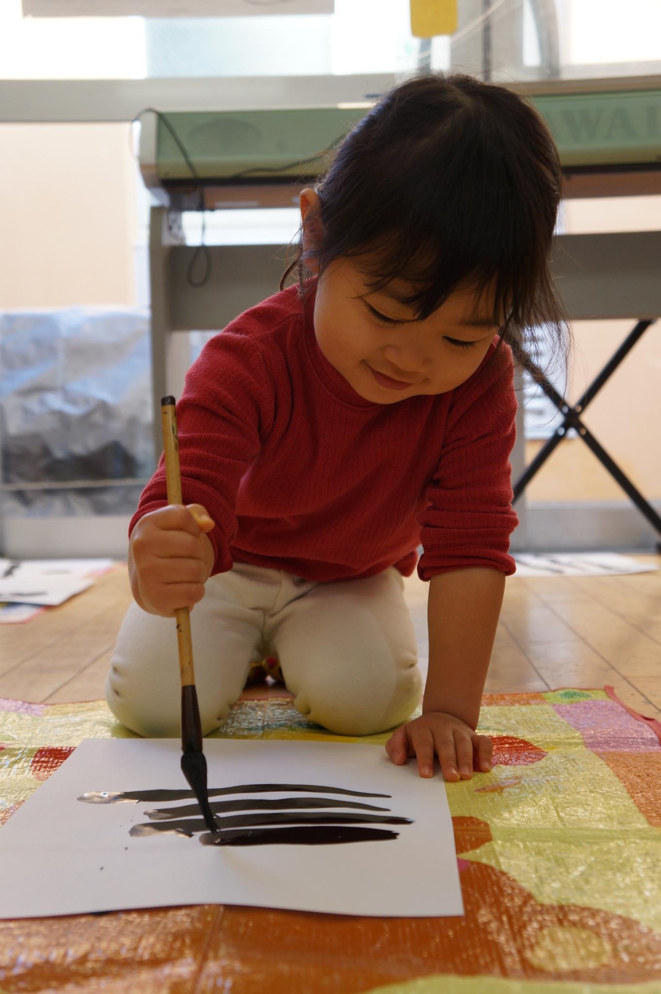 書き初めは、目標やお願い事を口に出してから、自由に筆で書きました。