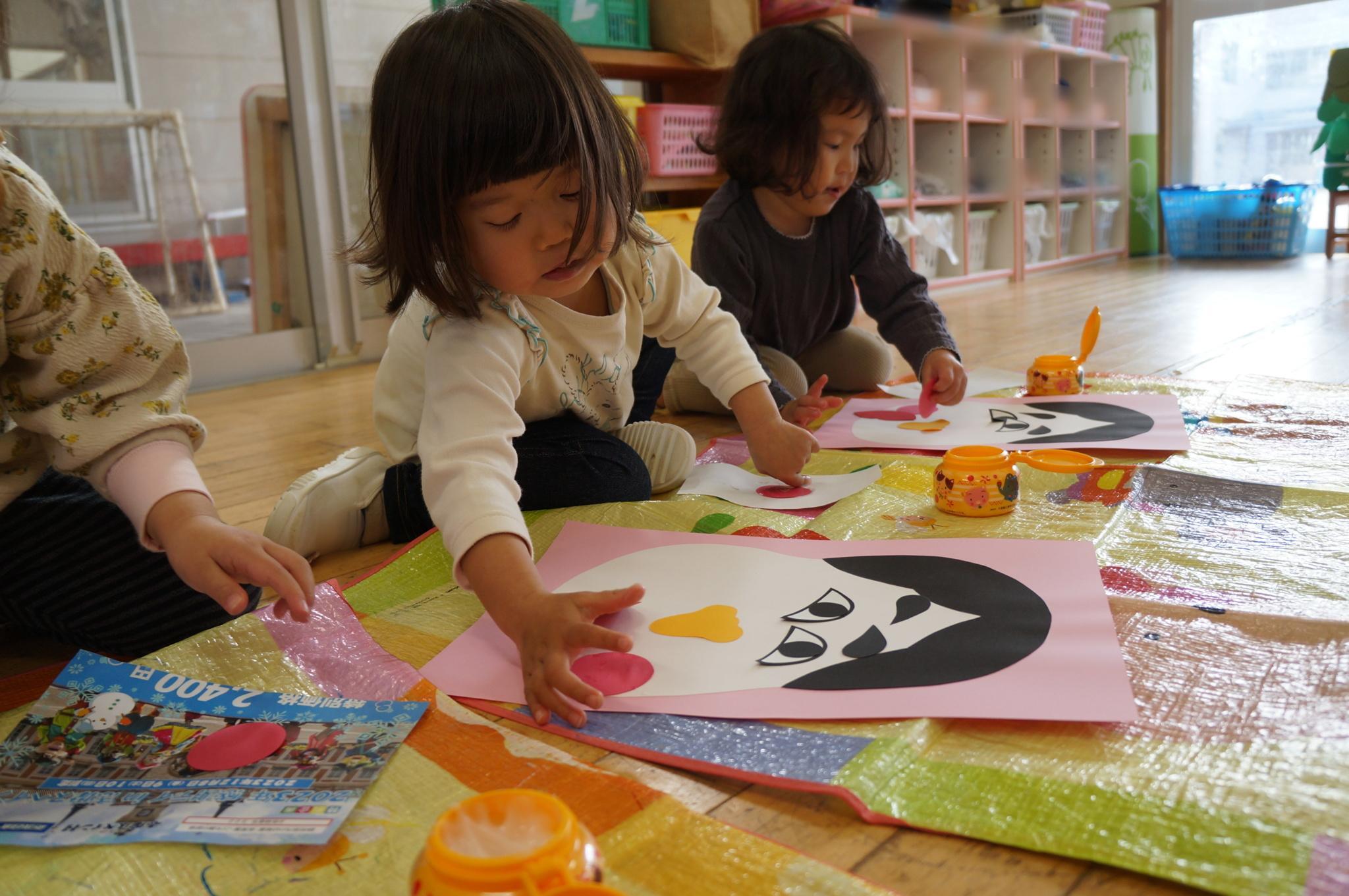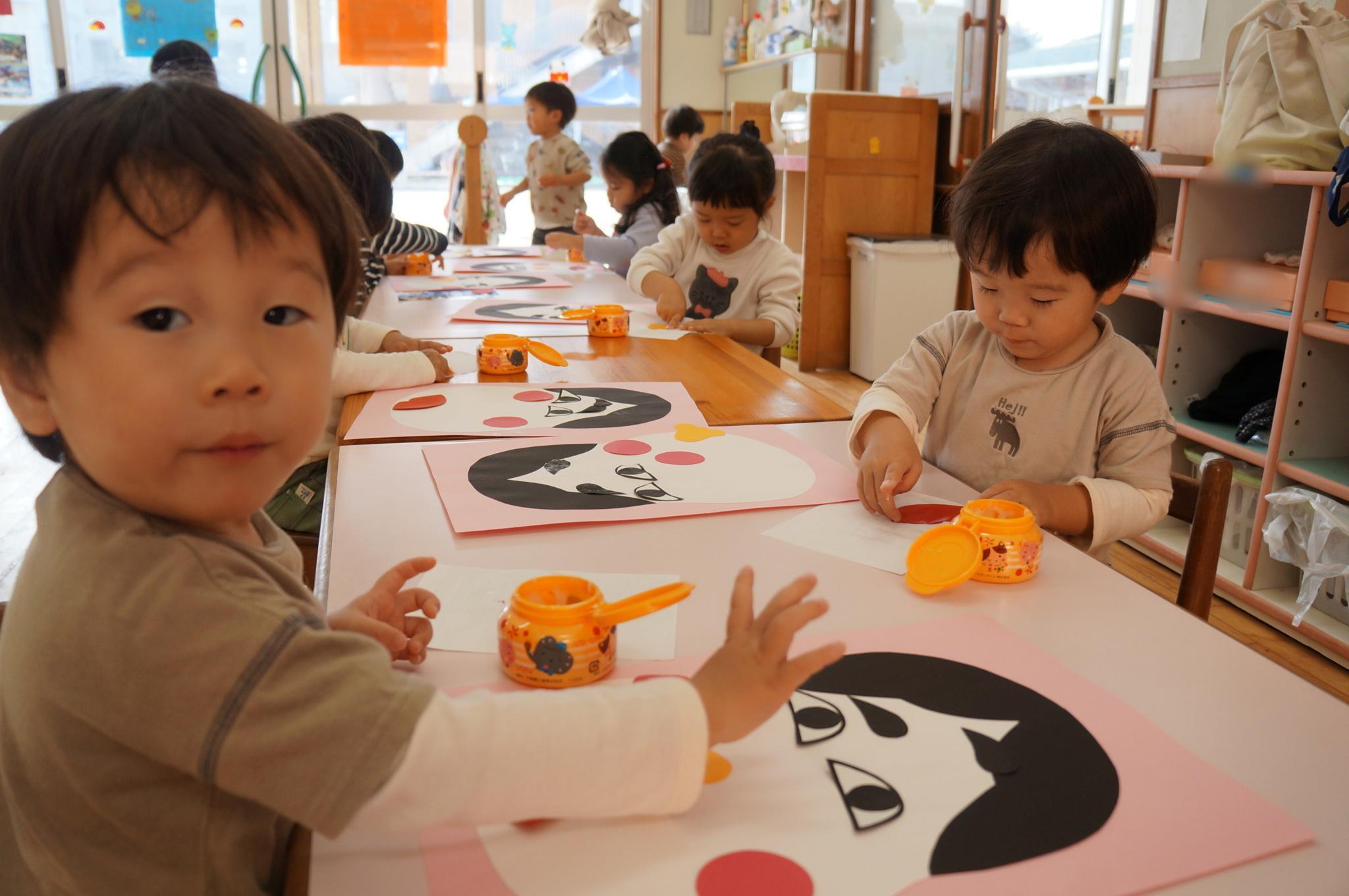1月は、福笑い、書き初め、しめ縄の製作をしました。それぞれ楽しみながら、集中して製作をしていました。