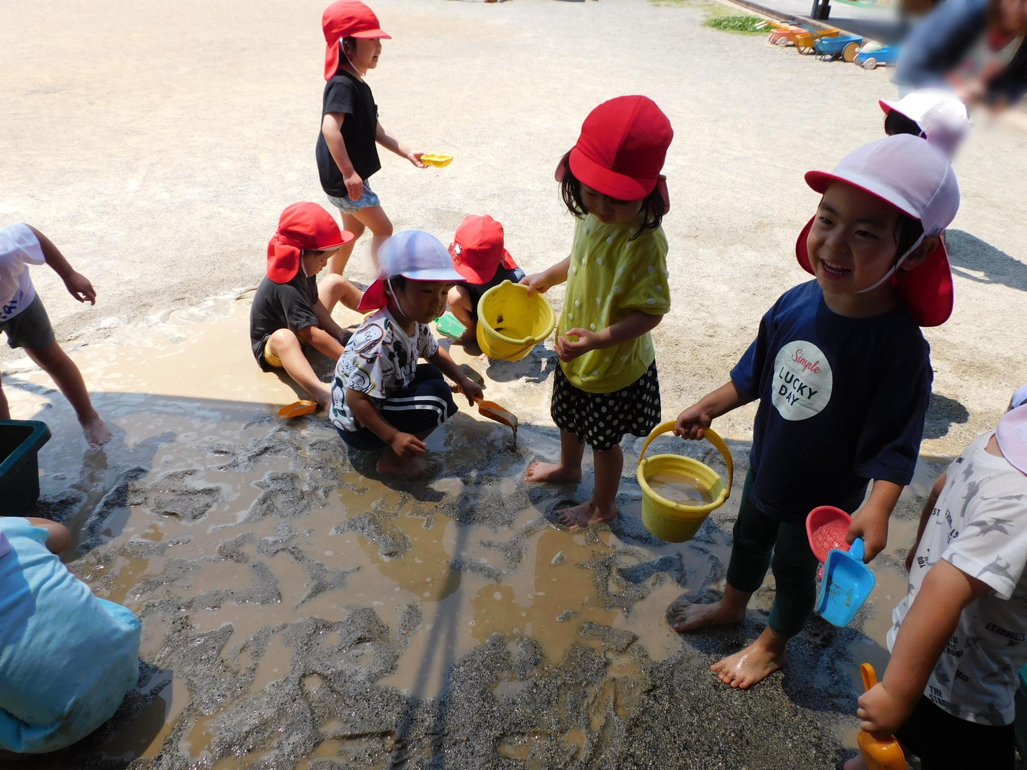 だんだん暑くなってきました。もうすぐプール開き!泥んこ遊びも楽しんでいます