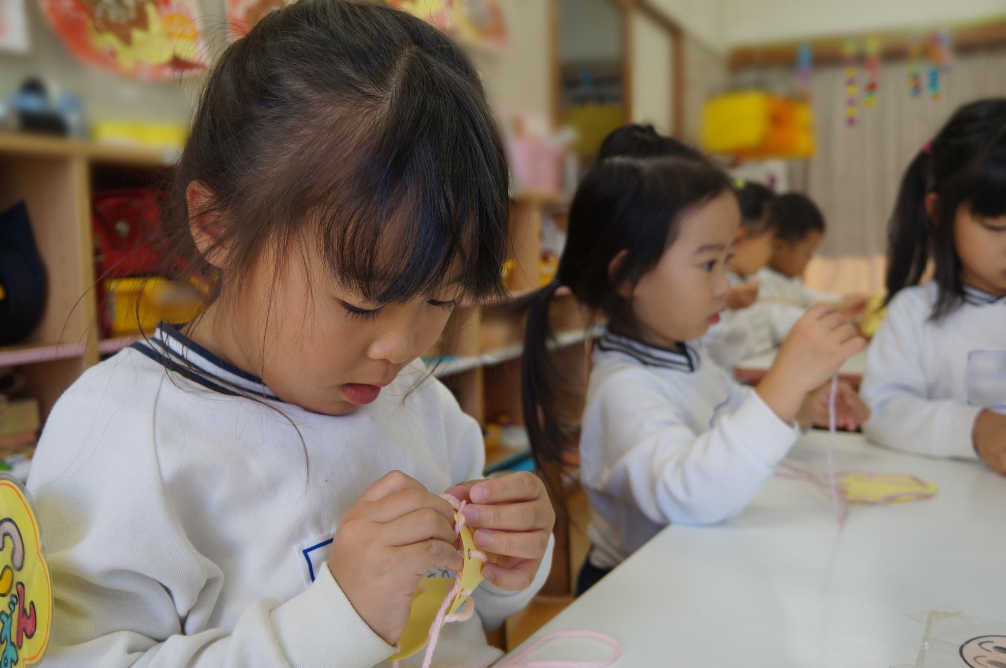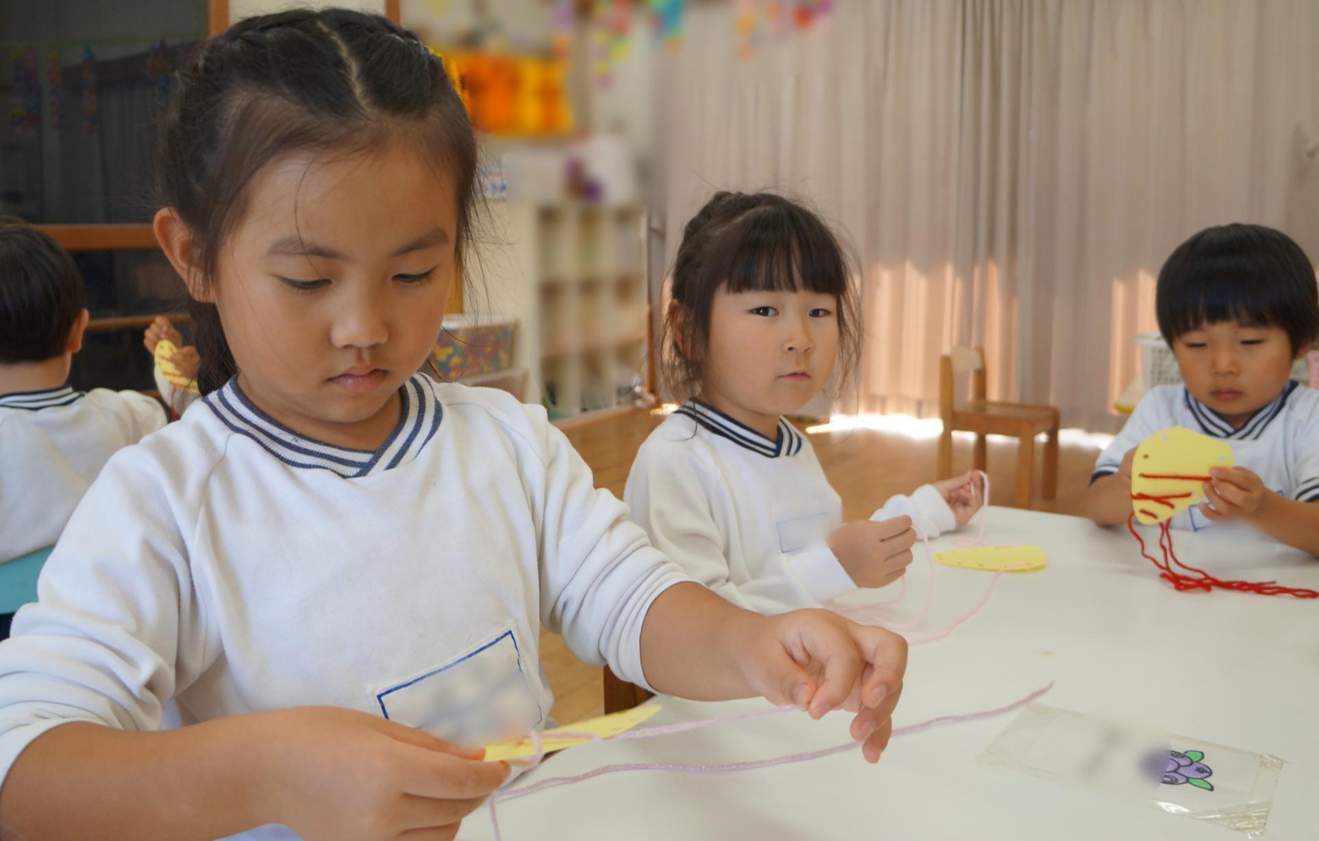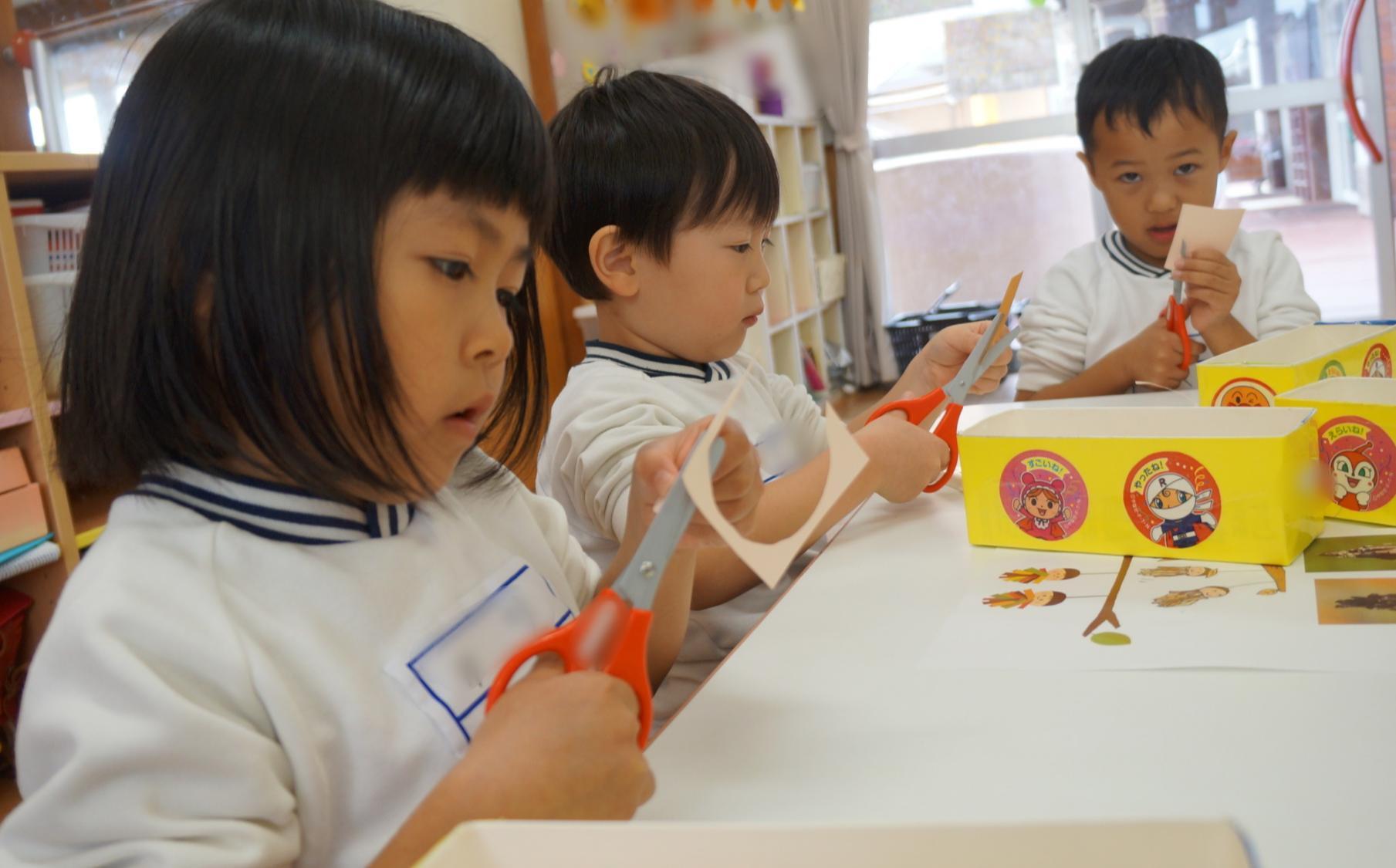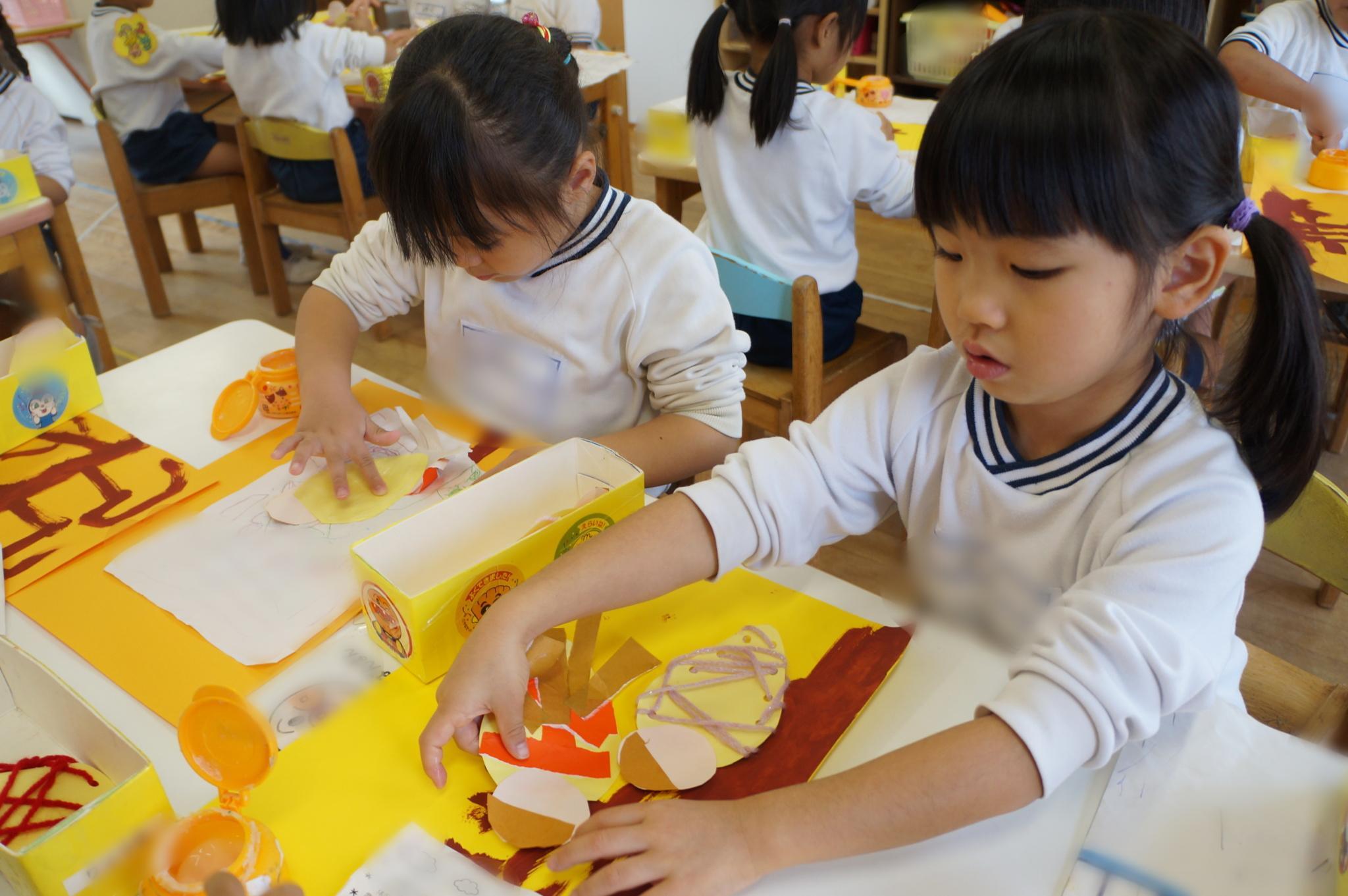 みのむしの製作をしました。はさみで切ったり、のりで折り紙を貼りつけたり、毛糸を使ったりして、一人ひとり工夫したみのむしが出来上がりました。