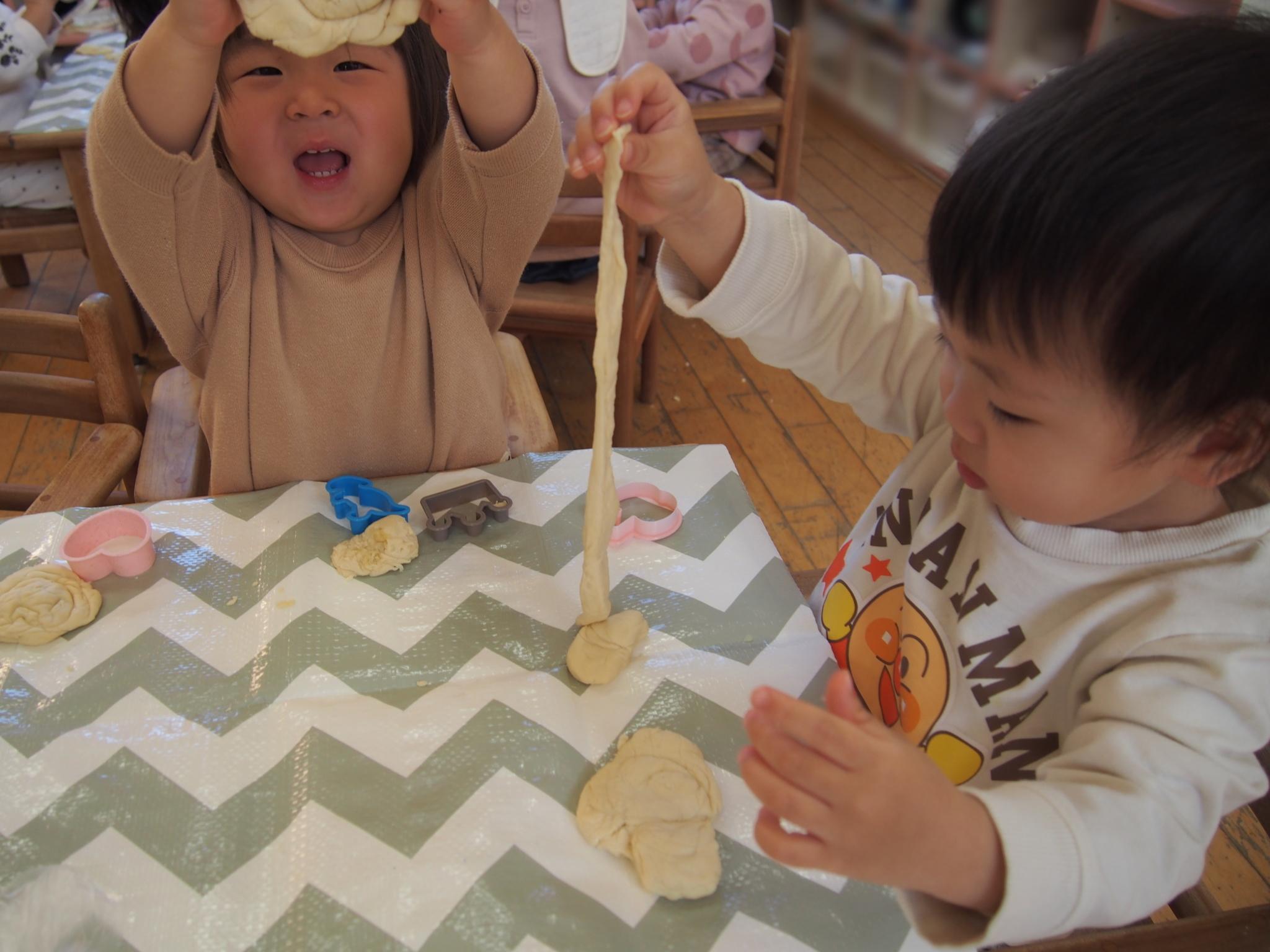 ヘビやお団子を作ったり、パン屋さんごっこをして楽しみました。