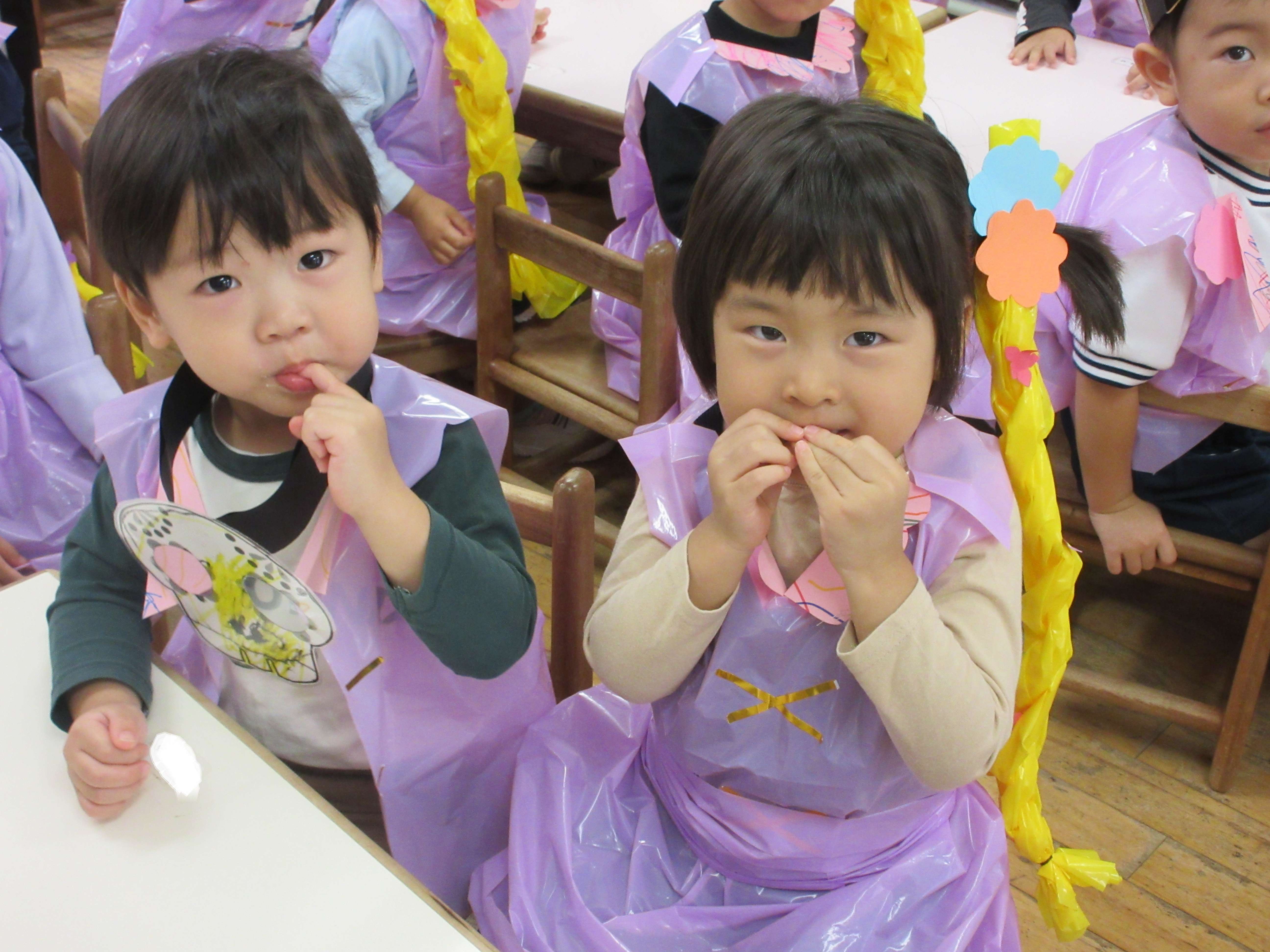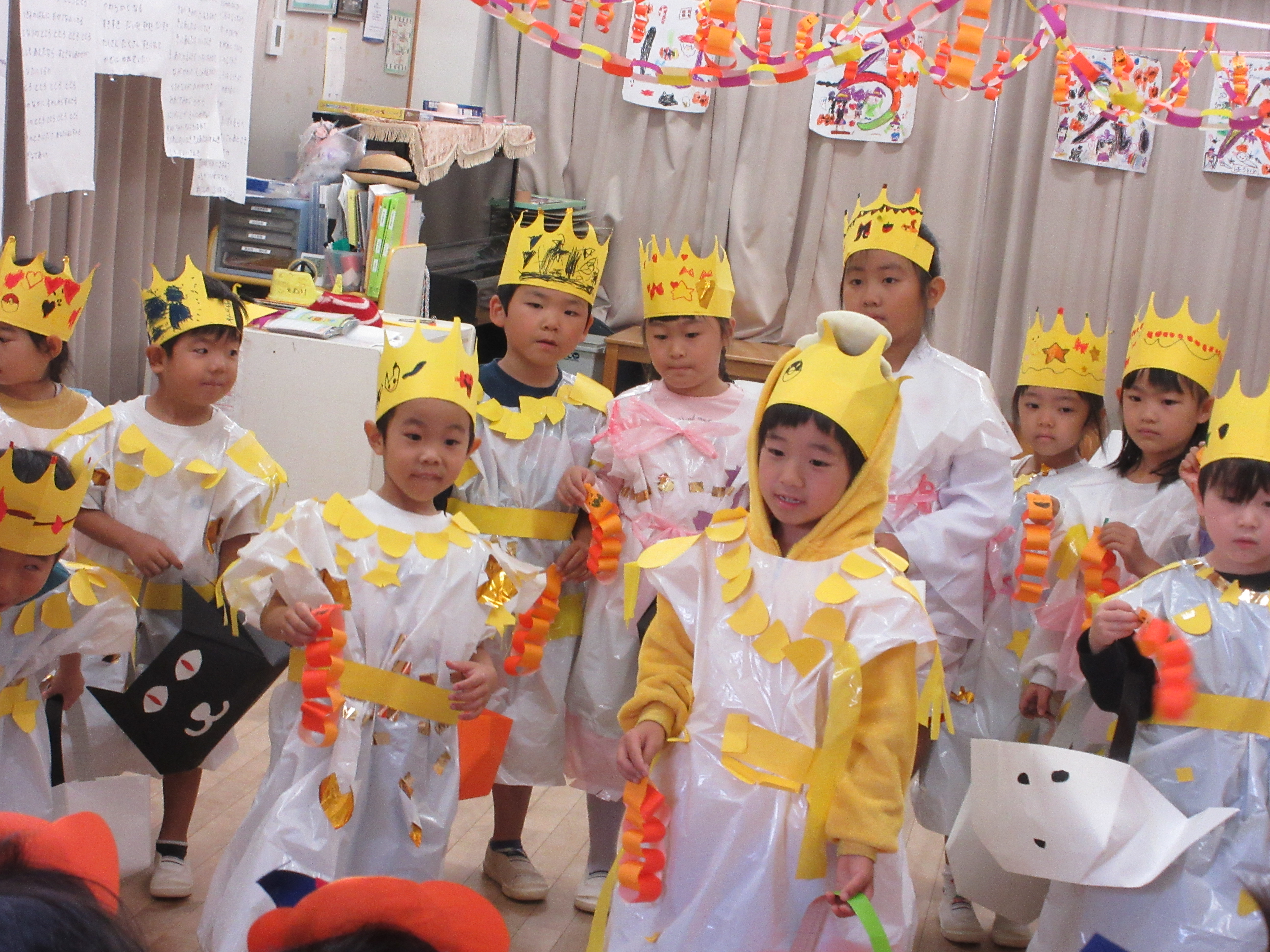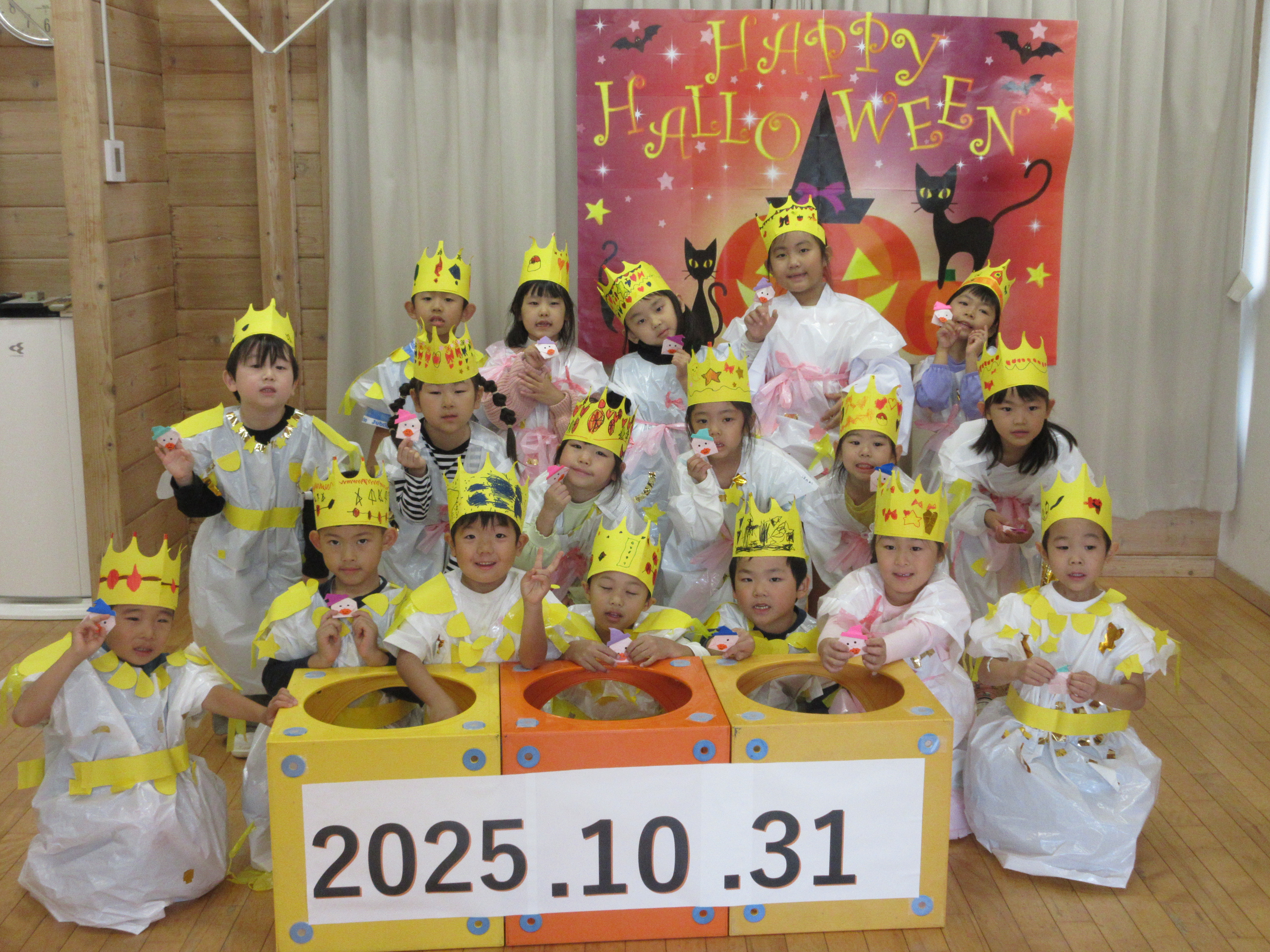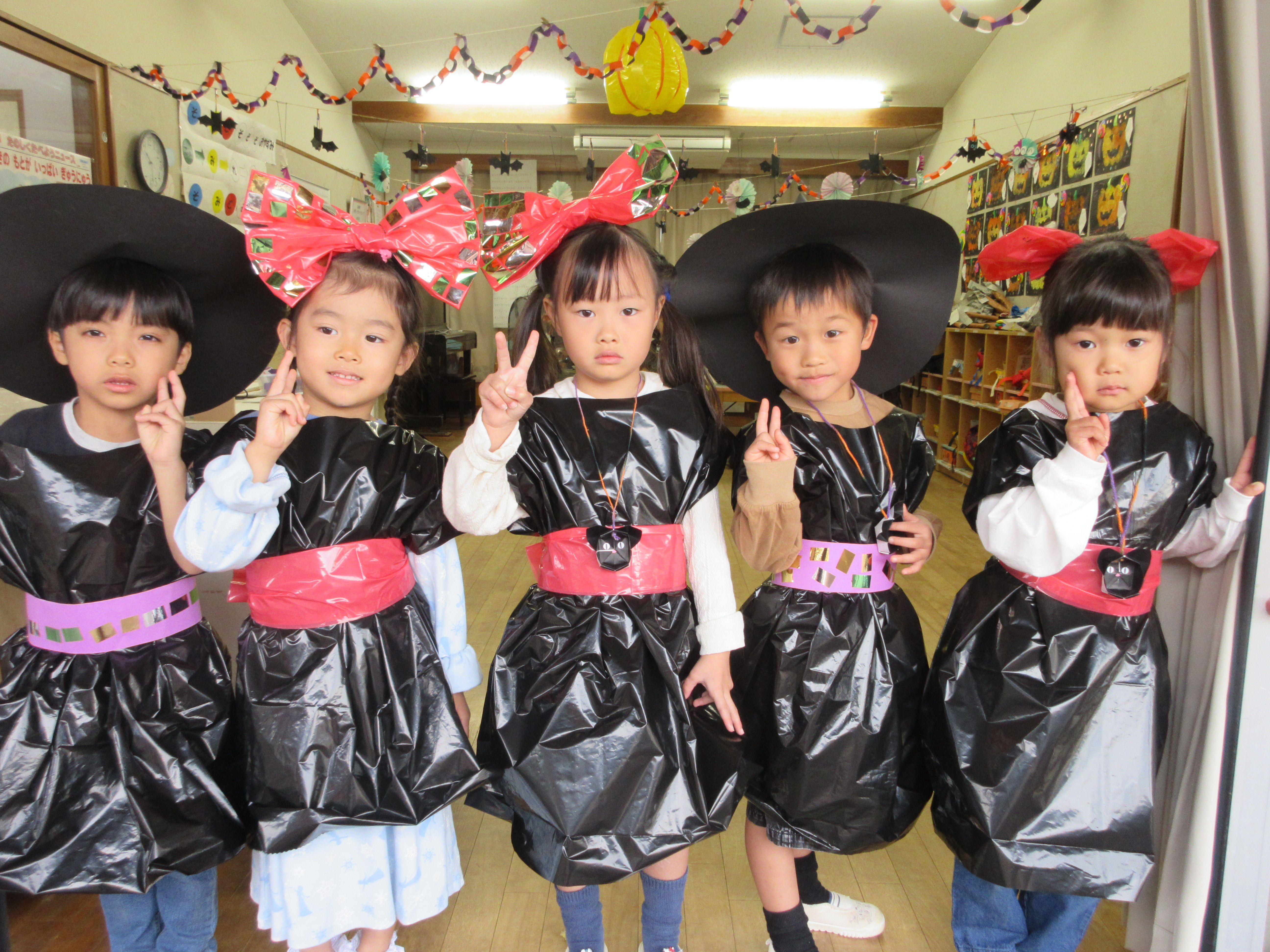 楽しみにしていたハロウィンパーティー!各クラス手作りの衣装を準備し、当日はどの子もとてもかわいく仮装しました。「トリックオアトリート!」と大きな声で各クラスをまわり、プレゼントの交換をしたり、ゲーム遊び、幼稚園までパレードもしてみんなで交流を楽しみました。